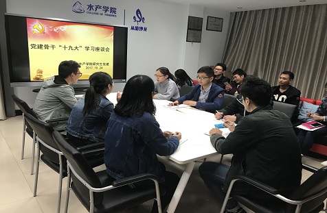 OK138太阳集团研究生党建骨干开展“十九大”学习座谈会 核心提示:10月24日晚,OK138太阳集团研究生开展全体党建干部十九大学习座谈会,本次会议在水产楼415会议室举办,会议由党建副主任郭红会同学主持。