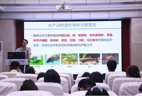 水产动物遗传育种与繁育系教工党支部书记沈志刚副教授系统展示了分子育种体系构建;黄颡鱼、鳜鱼、小龙虾的品种培育,以及通过基因编辑培育无肌间刺鱼的突破性成果。