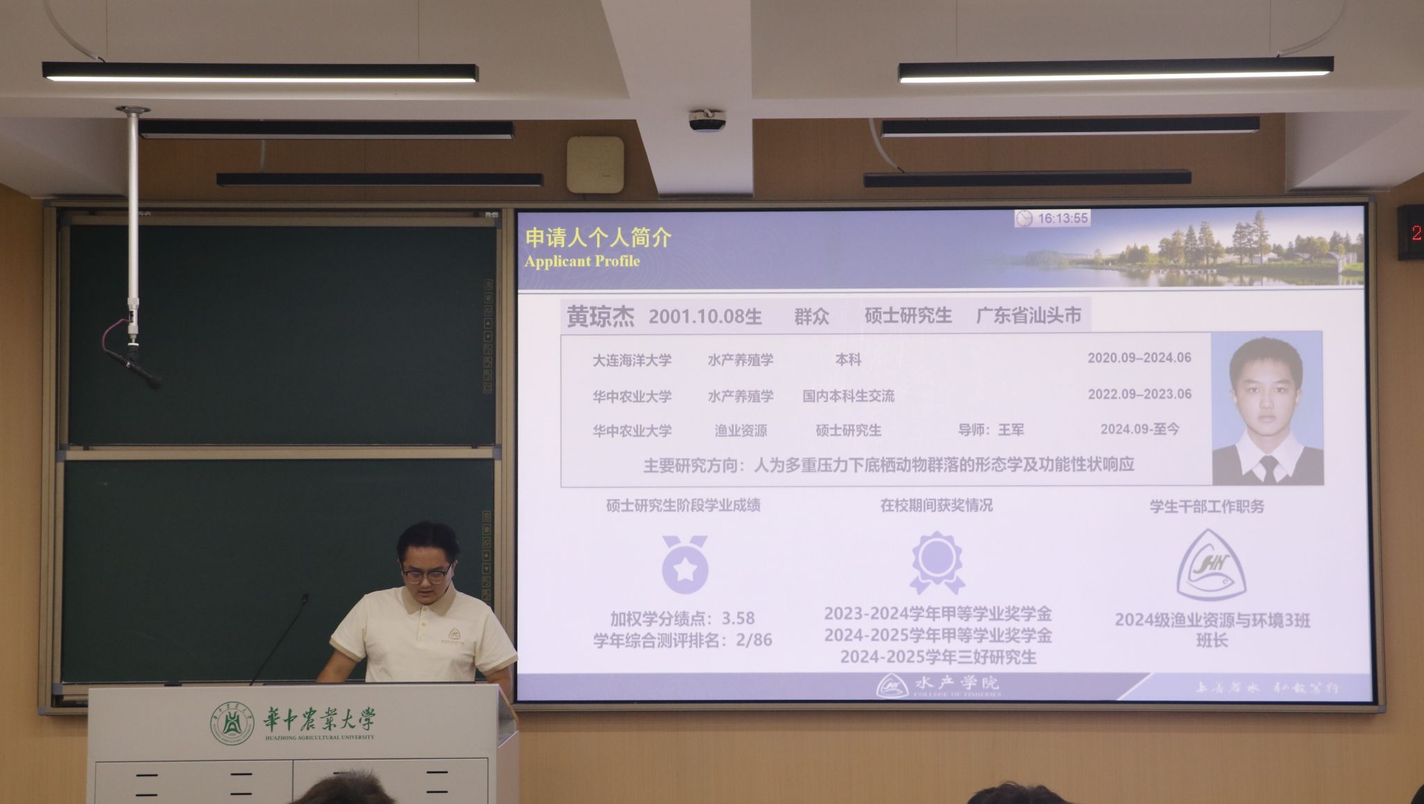 本次答辩评选不仅是对评审流程的规范落实,更是对优秀研究生素养的综合展示。通过示范引领,将激励我院研究生以“笃学”为根基,用高质量论文与专利回应行业需求;以“创新”为动力,在竞赛与科研中突破传统边界;以“实践”为路径,在校园服务与兴农实践中践行初心,为我国水产养殖产业的高质量发展贡献青春力量。