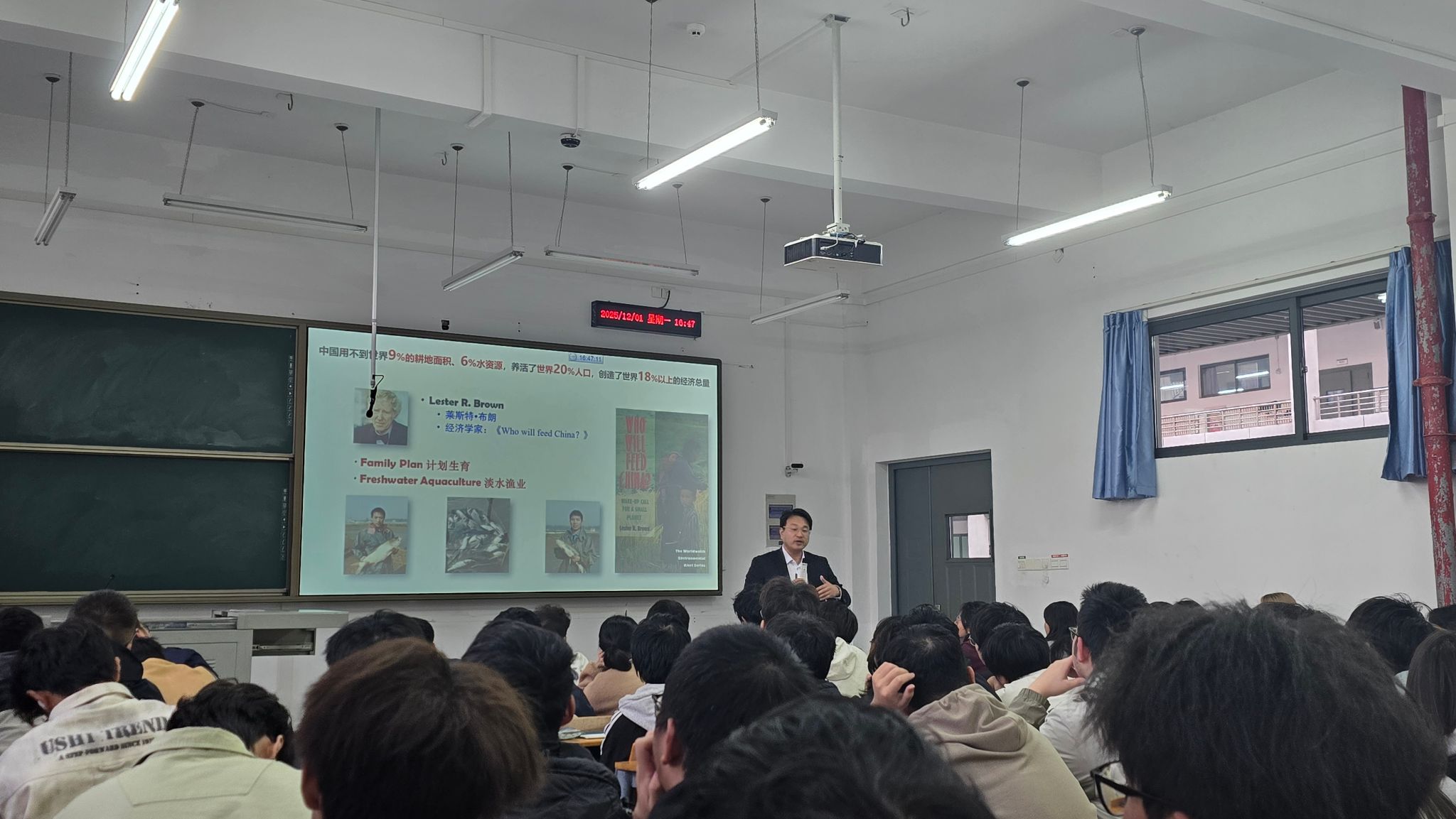 12月1日下午,李大鹏老师以“阔步迈向农业强国”为主题,为OK138太阳集团新生授课。课程伊始,一段关于我国白羽肉鸡育种突破的视频吸引了同学们的注意力。通过这个案例,李老师生动阐释了保障国家粮食安全和重要农产品供给的战略意义。他从“洪范八政,食为政首”的古训切入,强调粮食安全是治国理政的头等大事,深入浅出地讲述了我国在端牢“中国饭碗”、夯实“肉案子”等方面取得的巨大成就及其对国家安全和发展的基石作用。