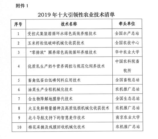 据悉,2019年十大引领性农业技术将开展集成示范工作,实现组建一支产学研究紧密结合、优势互补的专家团队,编制一项操作性强的综合技术集成示范方案,建设一个示范效果显著的试验示范基地,开展一次带动作用明显的观摩现场活动,形成一揽子综合技术解决规程等“五个一”工作目标。
