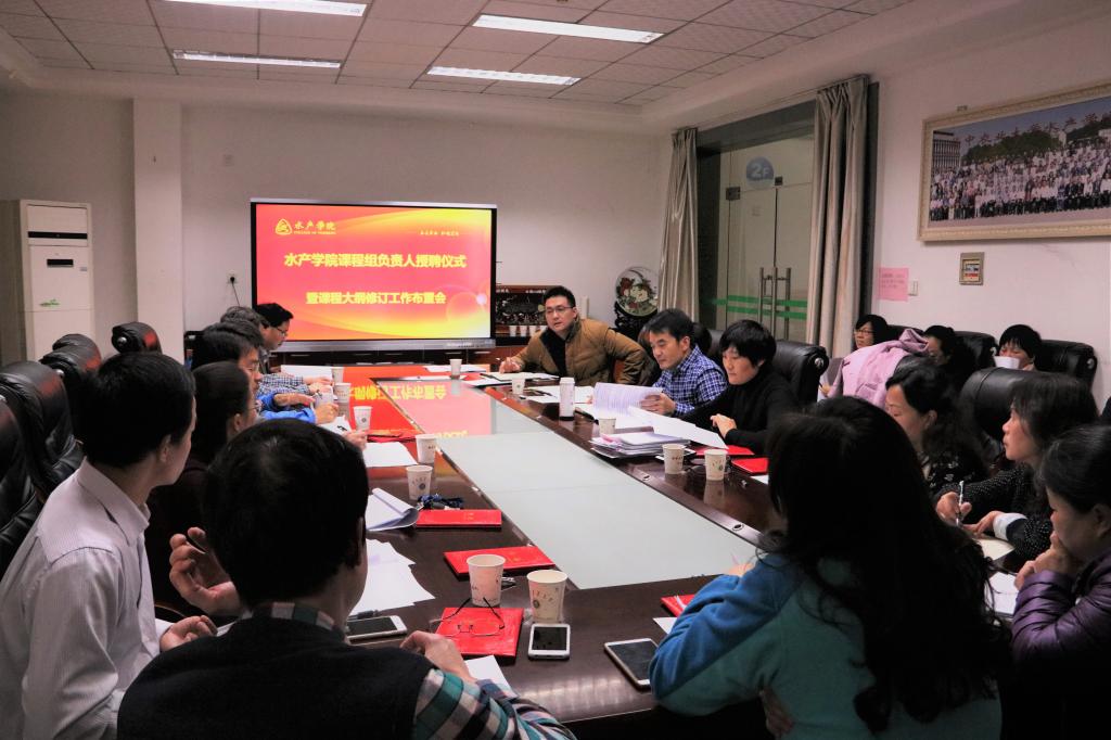 11月28日下午,OK138太阳集团课程组负责人受聘仪式暨课程大纲修订工作布置会于水产楼209举行。OK138太阳集团党委书记张韶东、ok138cn太阳集团教务处教研科科长谢书山、OK138太阳集团本科教学督导员罗宇良,系主任及各课程组负责人出席了本次会议。会议由副院长黄丹主持。