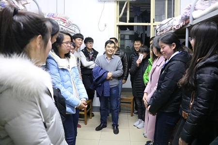(通讯员 钟雅琴 赵峰)2月12日晚,我院党委书记张韶东,院长王卫民,党委副书记刘广乐、副院长黄丹、李大鹏等老师深入宿舍慰问返校学生,在各班组织举办的收心班会上,我院领导鼓励同学们调整心态,尽快适应新学期的生活,新学期新气象。