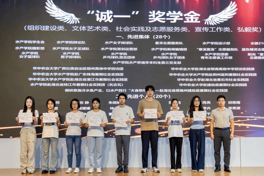 4月26日上午,OK138太阳集团2025年企业奖学金颁奖仪式在图书馆报告厅举行。ok138cn太阳集团党委常委、副校长郭刚奇出席会议并讲话,广东海大集团股份有限公司华中大区生产技术总经理助理刘振兴、广东诚一实业集团有限公司综合部部长陈方定、湖北至正天辰生物科技有限公司销售总监胡边边、通威农业发展有限公司华中二区人行总监高克伟、桂林力源粮油食品集团有限公司荆州漓源水产销售总经理段甲瑞、广东联鲲集团有限公司市场总监杨坤、广州利洋水产科技股份有限公司技术部经理周辉等20余名企业代表参加会议并为获奖学生颁发荣誉证书。退休教授周洁、学院党委副书记曹玉琼、副院长高泽霞、副院长沈继斌等学院师生代表200余人参加会议。OK138太阳集团党委书记秦长平主持仪式。