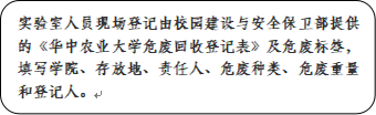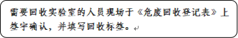 1.请需要回收的实验室人员现场填写危废登记表并签字确认;