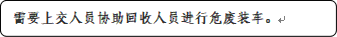 4. 如果出现如下现象,将不予以回收:废弃物分类标签和回收登记表信息填写不完整、废液桶中废液过少、玻璃容器中存有液体、针头、碎玻璃等锐器裸露、容器及袋子未良好密封,出现漏液、废弃物洒出现象。