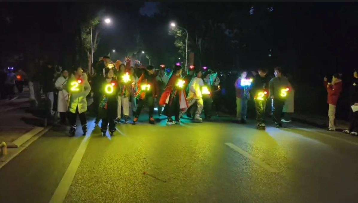 2025狮山欢乐节潘星辰举“来”字灯牌(潘星辰摄)