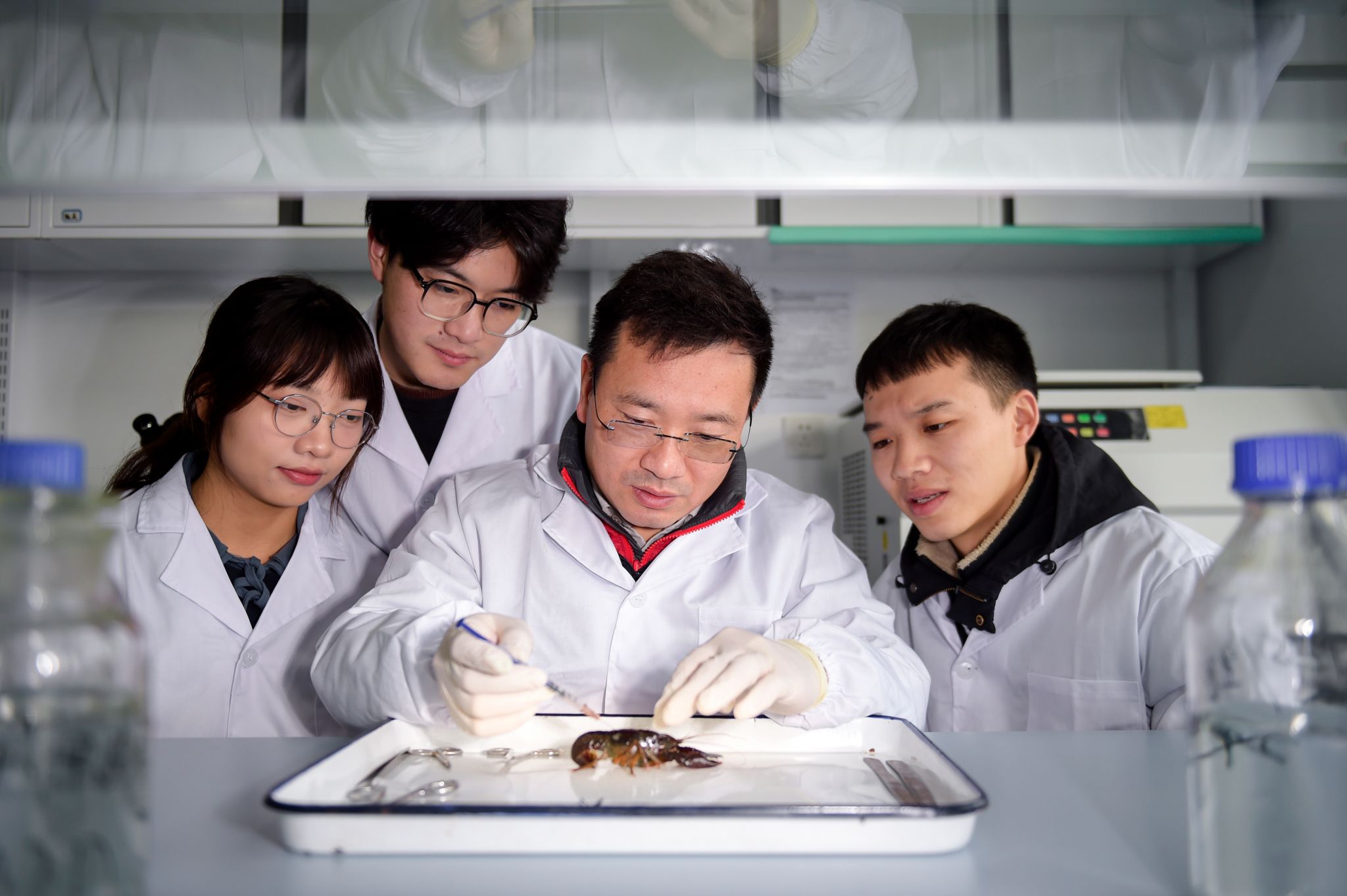 冯立慎同学在导师指导下开展养殖工作