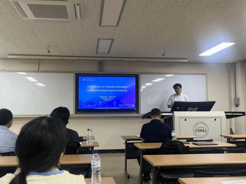 最后,访学团在教室举行了学术交流会。双方师生就各自的研究方向及水产养殖技术进行了深入的介绍和讨论,特别强调了生态保护在研究中的重要性,拓宽了学生的视野,深化了其专业认知。会上,高坚教授详细介绍了ok138cn太阳集团的基本情况,并从OK138太阳集团的基本情况、人才培养、科学研究和国际合作等四个方面进行了全面阐述。