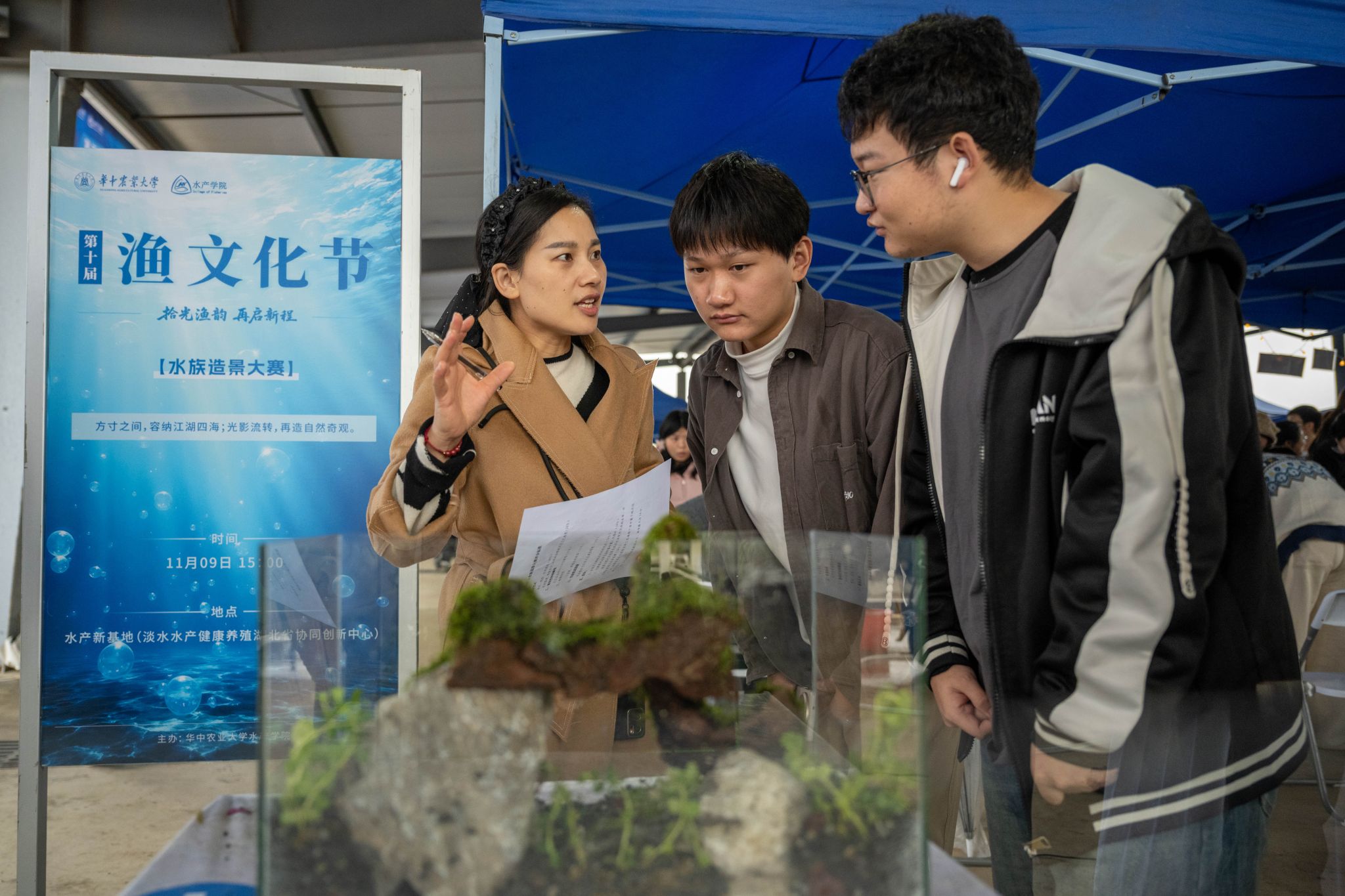 水族造景大赛延续“水中江山亦多娇”,以专业技能展呈现水下景致。参赛同学运用水草、沉木、石子等不同材料,设计出风格迥异却精致美观的“小景观”。现场氛围热情洋溢,创意碰撞交织,选手们分工协作,依照自己的思路打造出一个个美丽的水下世界。