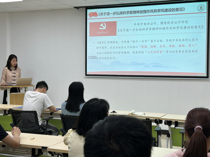 分享结束后,大家进行心得交流,朱静静同志表示:“通过学习我了解到科学成就离不开精神内核,”科学家精神是科研工作者坚守岗位、攻坚克难、勇于奉献的良好精神品质。“新中国成立以来,无数科技工作人员扎根一线,努力钻研,创造了一个又一个奇迹。这种精神,是我们中华儿女宝贵的精神财富,激励着我们迎难而上,奋勇向前。为此,我们要大力弘扬科学家精神,以务实作风,不断开拓创新,学以致用,”田甜甜分享到,“此次活动让大家对科学家精神有了更深刻的理解,我们要认真走好科研路。”
