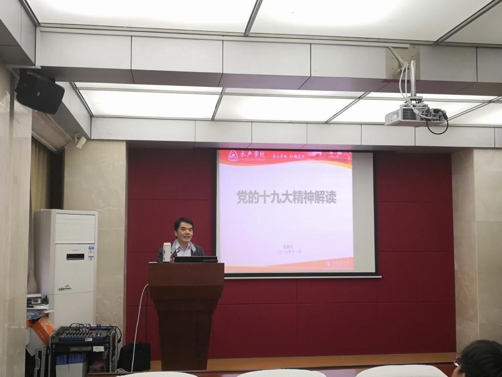 张韶东强调,学习贯彻党的十九大精神是当前重大的政治任务。全体党员要自觉学习领会党的十九大精神,自觉贯彻党的十九大精神,将学习和行动实际相结合,将学习与工作实际相结合,将学习与学科和产业发展相结合。各教工党支部和大学生党总支要迅速掀起学习十九大精神的热潮,务必保证学习时间,务必保证学习人人参与,务必保证学习全面准确充分。