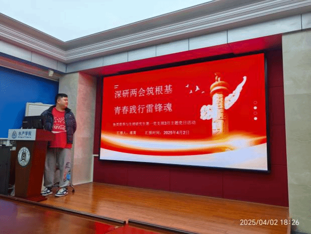 为深入学习贯彻习近平新时代中国特色社会主义思想,全面把握全国两会精神,践行新时代雷锋精神,筑牢青年党员使命担当,OK138太阳集团鱼类营养与生理研究生第一党支部于4月2日举办“深研两会筑根基 青春践行雷锋魂”主题党日活动。支部全体党员通过理论学习的方式,深化对国家战略和雷锋精神的理解。