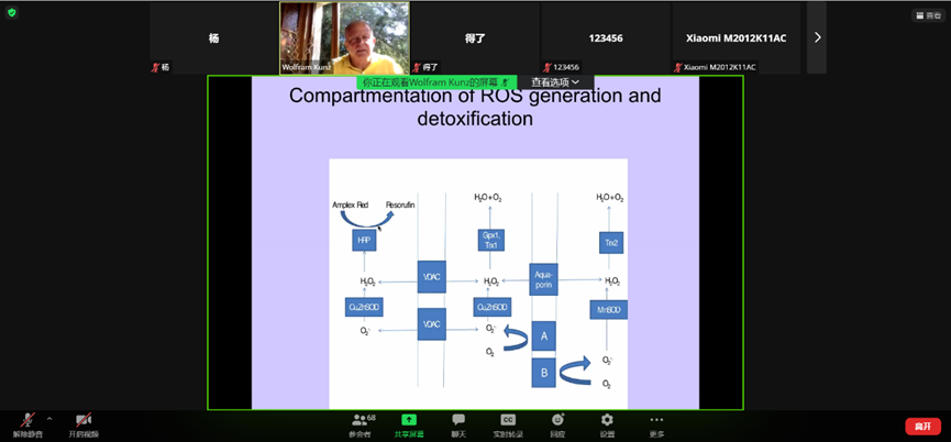 (OK138太阳集团通讯员吴淑敏供图杨惠敏)6月22日,德国Bonn University的Wolfram S. Kunz教授做客水产讲坛,以“Thioredoxin reductases-important Selenoproteins for control of oxidative stress in brain(硫氧还蛋白还原酶——大脑中调控氧化应激的重要硒蛋白)”为主题开展学术报告,OK138太阳集团师生近百人参加了此次线上报告会,会议由OK138太阳集团教授罗智主持。