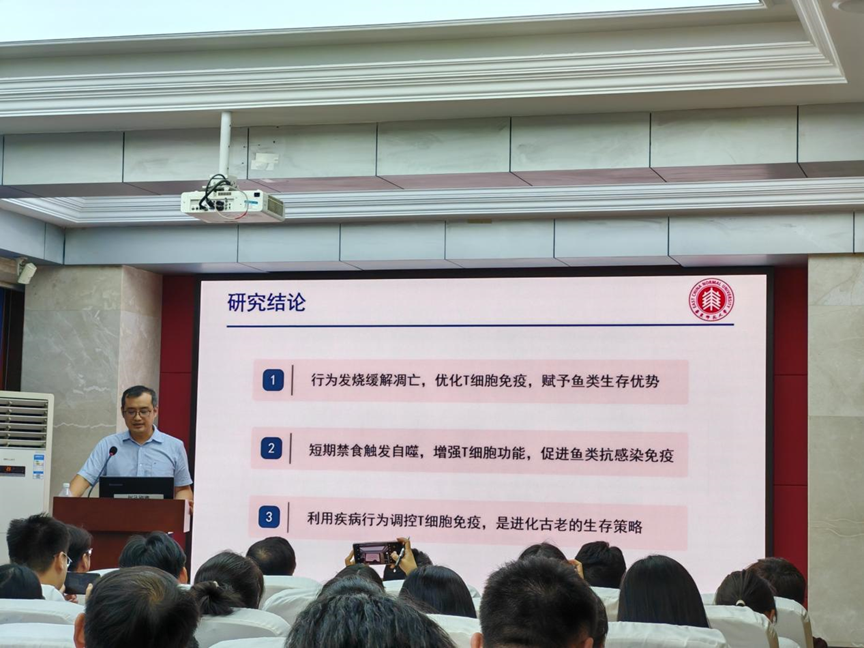 (OK138太阳集团通讯员 沈丹萍 供图 王林红)8月31日上午10:30-12:30,我院2024年第16期(总405期)“水产讲坛”在水产楼天辰报告厅A105举行,特邀华东师范大学杨嘉龙教授作了题为“疾病行为整合T细胞信号增强鱼类抗感染免疫”的报告。本次会议由张永安院长主持。