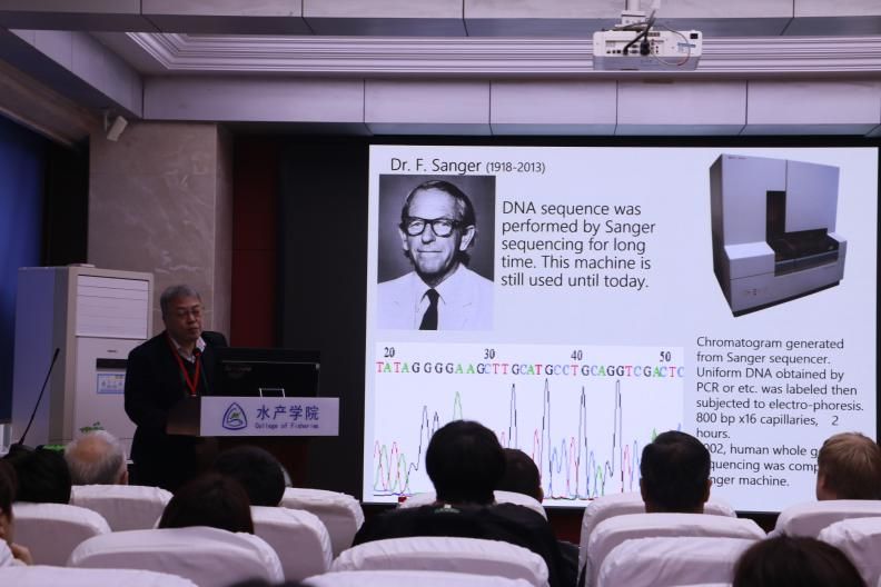 近畿大学的阿川康夫教授作了题为“水产养殖鱼类性状相关位点分子生物学工具强化分析研究进展”的报告。阿川康夫教授提到,基因组测序具有多年历史,在鱼类遗传育种和资源保护中发挥着重要作用。他们研究团队以白鲹鱼为研究对象,通过分析雌雄白鲹鱼及其亲子的不同性状,表明分子生物学工具可以增强对鱼类相关数据的分析,并在鱼类分子生物学的进一步发展中起到重要作用。