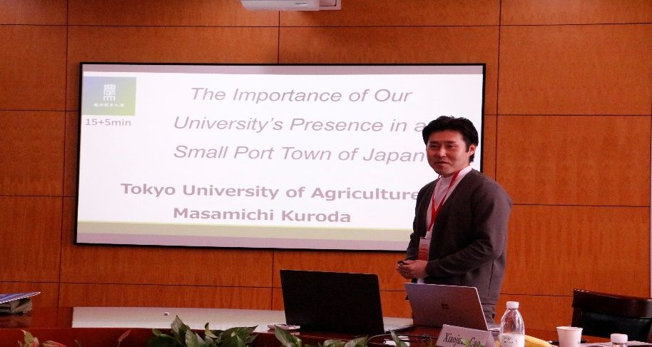 日本东京农业大学的Masamichi KURODA教授作了题为“我们大学在日本一个港口城市存在的重要性”的报告。他首先介绍了日本东京农业大学的三个校区,以及他们在日本全国各地都有实践训练设施的情况。其次,他从人口、气候和渔业产品捕获等方面介绍了Abashiri这个港口城市,并提到他们学校正在研究从Abashiri获取的鲑鱼、虾和贝类的养殖方法。最后Masamichi KURODA教授指出,他们学校的出发点旨在让学生全身心投入自然科学学习,增强动手能力,了解渔业的发展现状,以及促进当地渔业的发展。