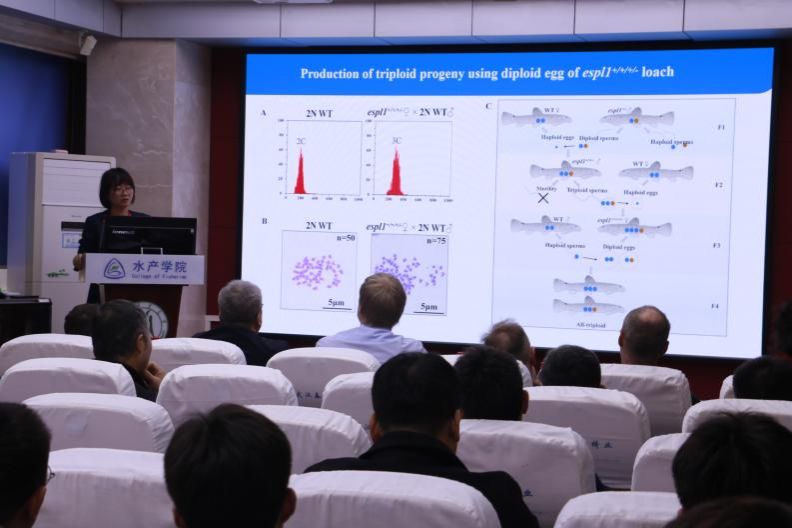 随后ok138cn太阳集团的曹小娟教授作了“泥鳅基因组及其与未减数配子形成相关的基因”的报告。曹小娟教授团队长期利用二倍体和多倍体的泥鳅展开研究,以细胞周期蛋白依赖性激酶1(cdk1)缺失的泥鳅和斑马鱼为对象,从全新视角来阐明未还原配子形成的机制;在此基础上提出创造鱼类多倍体的新策略,为推动水产养殖业的发展作出巨大贡献。
