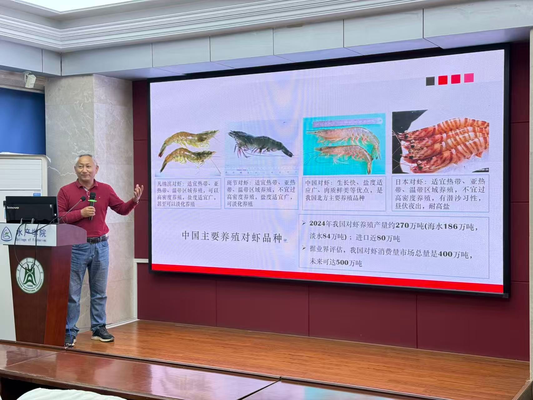 近日,我院2025年第10期(总420期)“水产讲坛”在水产楼A座105报告厅举行,特邀张家松研究员作专题学术报告,报告题目为“中国对虾工业化养殖现状和展望”。张家松研究员详细介绍了中国养殖对虾现状与工业化趋势、国外工厂化对虾养殖情况、我国工厂化养殖对虾情况、小棚养殖技术等内容。