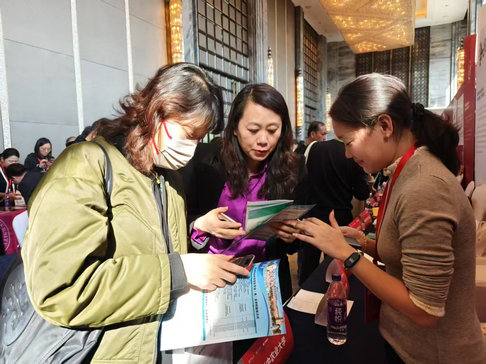 在高校招生咨询活动现场,面向来自全国各省市的高中负责人,我校河南招生组王佳怡老师详细介绍我校办学规模、办学特色和水平、师资力量、专业设置、招生计划、学生就业等情况,耐心解答高中负责人的各种问题,并开通了线上咨询通道,以便后续答疑解惑,建立与高中的深度交流机制。